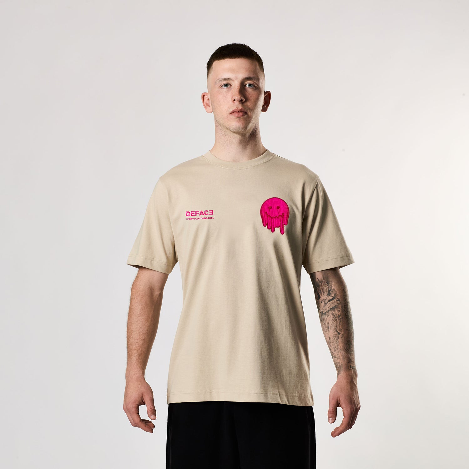 Deface Topo Dual Logo Tee (Beige Dust/Atomic Pink)