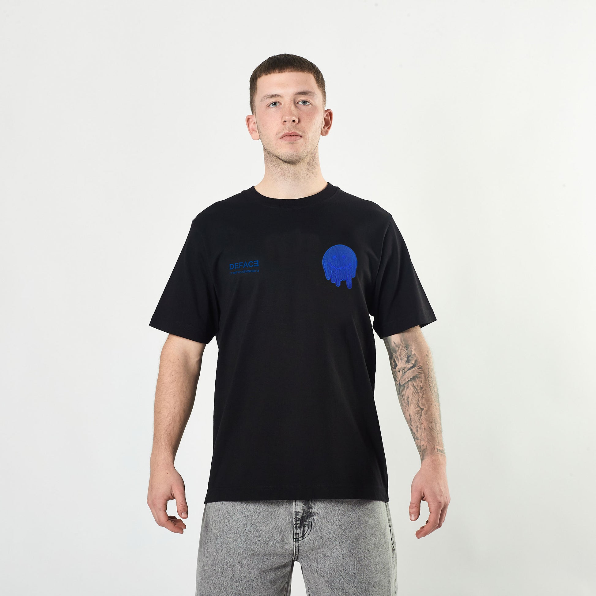 Deface Topo Dual Logo Tee (Black/Electron Blue)