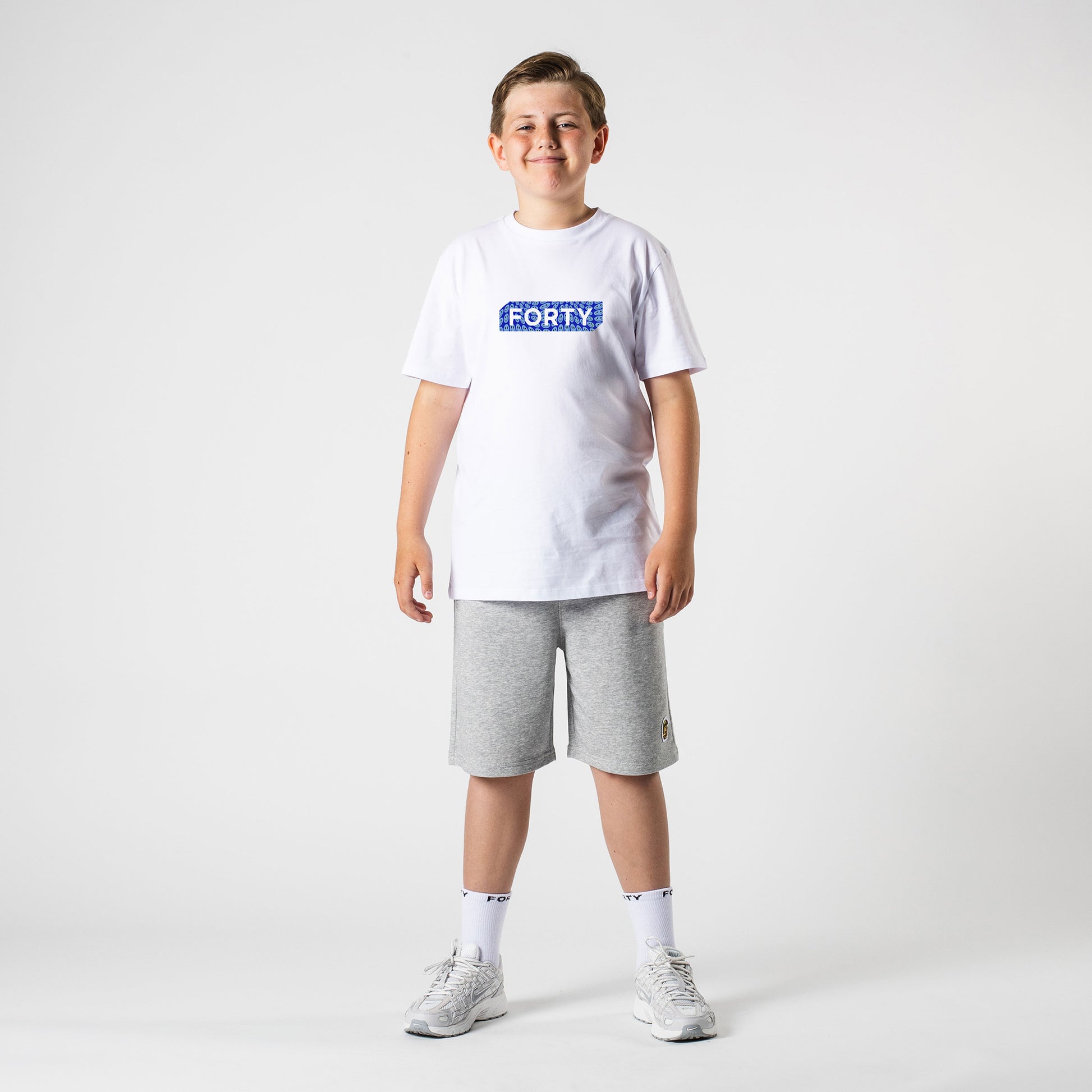 Junior Box Smile Tee (White/Neon Blue)
